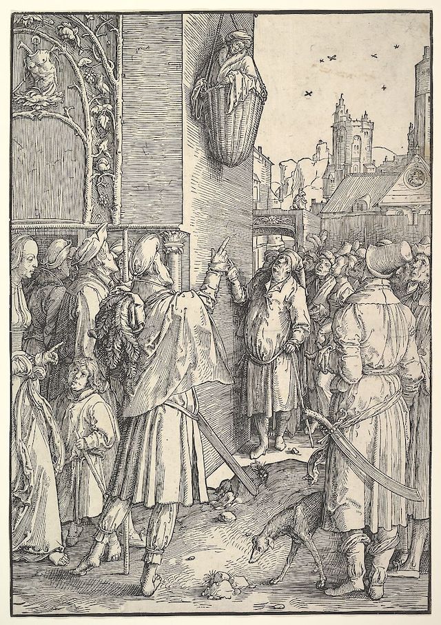 There’s a medieval legend in which the poet Virgil gets shown up for being a big letch by being left dangling in a basket below a lady’s window. Read about it here.