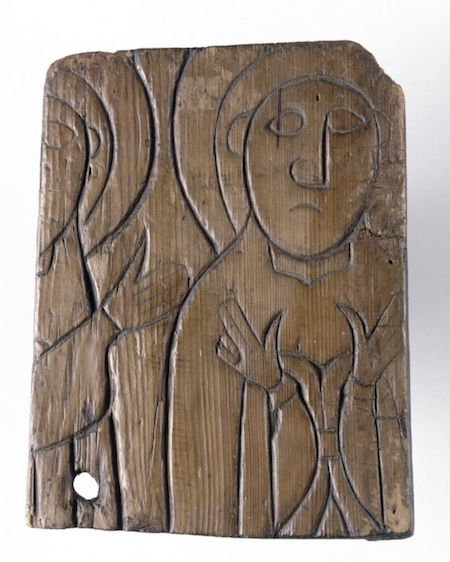From a reference book: Four carved fjali from the old farm in Flatatunga. That farm was demolished in 1952. These are four fragments of fjali with carved images of saints and decoration in the Ringling style. The fjali have original nail holes, which show that they were originally used as a base for images and not as panels. It has been argued that these are the remains of a large carved image of Christ and the apostles that adorned Hóla Cathedral during the time of Saint John the Evangelist in the early 12th century. These icons are considered the oldest of their kind in the Nordic countries. See about these parts in Kuml og heugfé and “Carved Panels from Flatatunga, Iceland, by Kristján Eldjárn, Reykjavík in ,, Acta Arvhaeologica”, vol XXIV, 1953, pp. 81-101. Furthermore, the book by Harður Ágústsson, Judgment Day and the Holy Men of Hólar, Reykjavík 1989. Source. (Via Google translate.)
