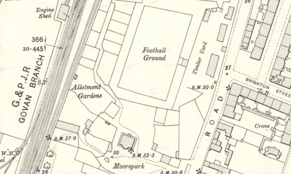 Govan FC (1873-81) started out at Fairfield Park, then moved to Moore Park between Broomloan Road and the north/south Govan branch of the Glasgow and Paisley Railway.