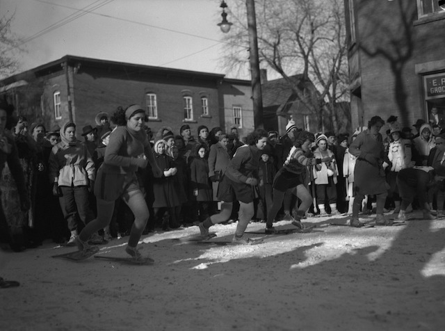Before the construction of the Macdonald-Cartier Bridge turned it into a highway King Edward Avenue was quiet enough to host annual winter games. This is the corner of King Edward and Clarence on the East Lowertown side. Source.
