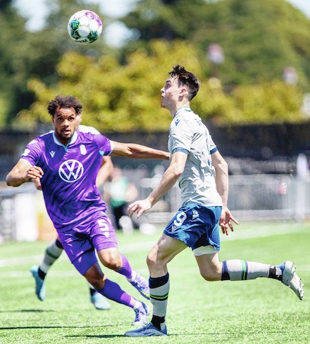 Abdou Samaké and Samuel Salter in a 2022 match. Both now play in Sweden. Source.
